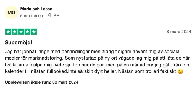 Sofia kom i kontakt med oss när hon precis hade startat sin klinik och enbart hade ett par kunder i veckan. Sofia beskrev att som nystartad kan det vara svårt att veta hur man ska göra för att utnyttja sociala medier till att faktiskt få kunder genom dörren, och efter att ha kommit i kontakt med en annan person som sett stor framgång från samarbetet med oss så bestämde Sofia sig för att ge det ett försök.